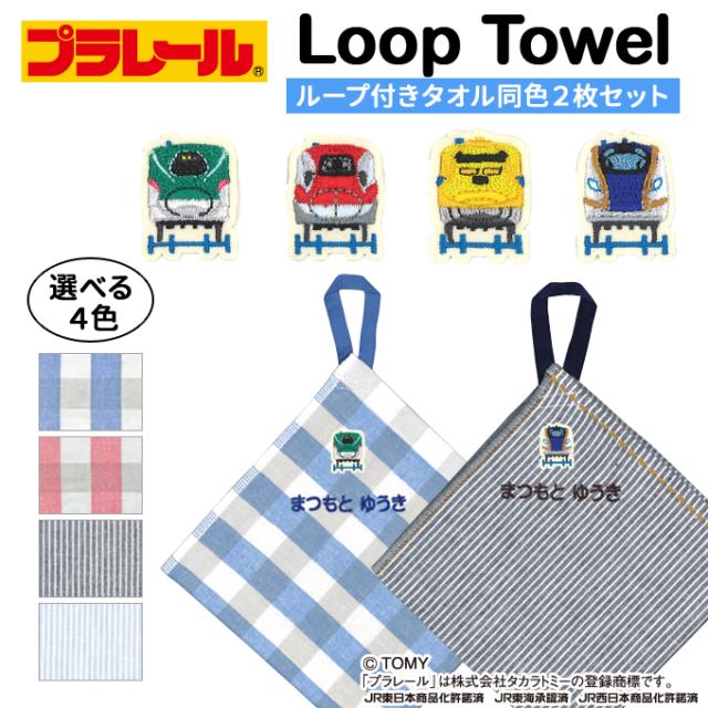 名入れ 刺繍 ループタオル プラレール 2枚 名前 子供 男の子 女の子 ギフト ハンドタオル キャラクター OR