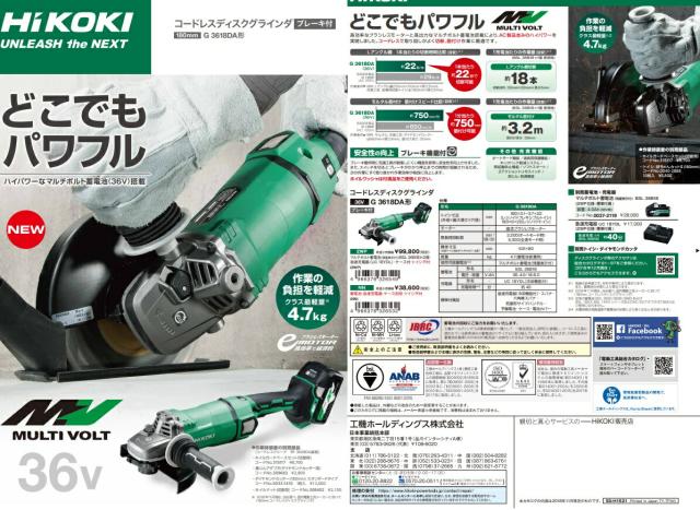 HiKOKI コードレスディスクグラインダ G3618DA(NN) 本体のみ ブレーキ付 トイシ径180mm 取り回しが良く切断・筋付け作業に最適 36V対応 ハイコーキ 日立