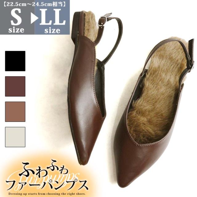 レディース パンプス ファー フラットパンプス ファーソール ストラップ サンダル ローヒール ぺたんこ ミュール ポインテッドトゥ ふわふわ 痛くない 歩きやすい 履き易い カジュアル キレイめ お洒落 大人 女性 靴 /2026新作 秋冬 トレンド
