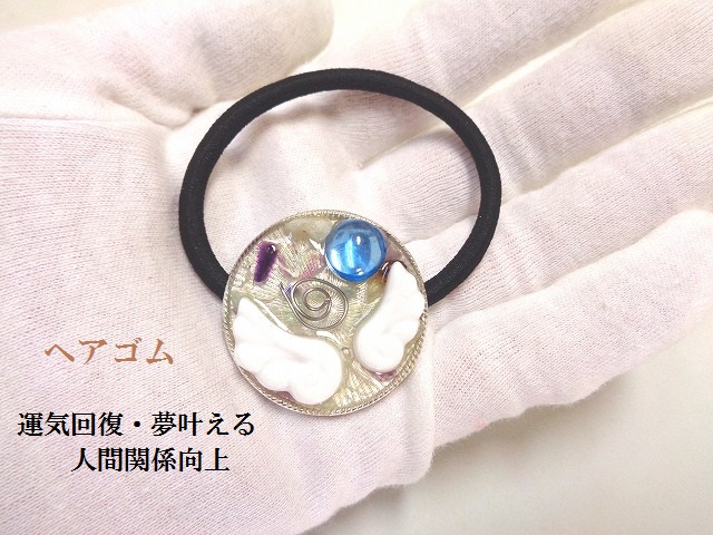 運気UP・運気回復・夢を叶える★フローライト★ヘアゴム★天使の羽根★パワーストーン