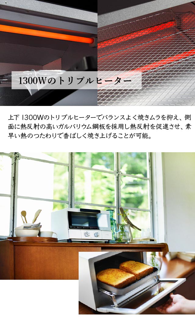 *合計1300Wのハイパワーと熱を効率的に伝え、焼きムラをなくす“トリプルヒーター”と“庫内のガルバリウム鋼板”で表面はサクサク、中は熱々でふわっとした食感の「うまパン」の名にふさわしい焼き上がりを実現しました。