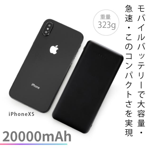 モバイルバッテリー 大容量 20000mAh 2A 急速充電 2ポート 同時充電 PSE認証済 180日保証 iPhone iPad スマホ Galaxy Xperia Android 防災 | 充電器 持ち運び バッテリー モバイル アイフォン 携帯充電 モバイル充電器 アンドロイド 安全