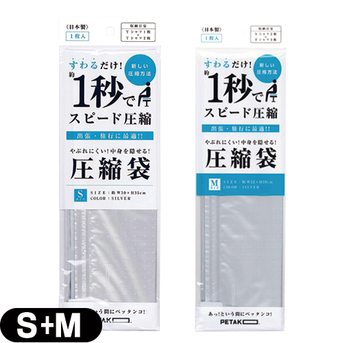 【収納用品・圧縮袋】いづみ企画 PETAKO ペタコ Sサイズ(300×350mm) + Mサイズ(320×390mm)セット - すわるだけ、あっ!という間にスピード圧縮!1秒で圧縮できる圧縮袋。