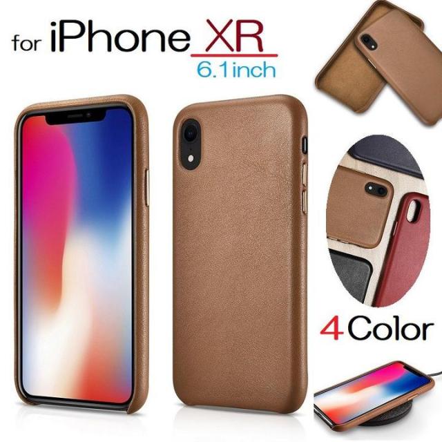 送料無料【正規品】iCARER iPhone XR 6.1インチ用 ボタンあり オリジナル 牛革 本革 レザー バック カバー 保護ケース バンパー(ブラック、ブラウン、ネイビー、レッド)4カラー選択