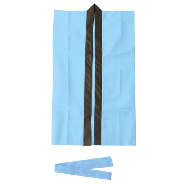 ロングハッピ 不織布 子供用 Sサイズ ハチマキ付 水色 はっぴ 半被 運動会 体育祭 まつり 祭 衣装 ダンス 踊り チーム イベント 発表会