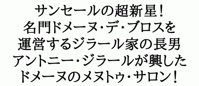 フランス・ロワール地方のサンセール南西に位置する人気AOC地区メヌトゥ・サロン!メヌトゥ・サロンは土壌に無数の小さな牡蠣の貝殻が見られ、石灰質と柔らかい粘土層が折り重なっています。豊富なミネラルが影響を与え、独自のボリュームある風味となっています。名門ドメーヌ・デ・ブロスのジラール家の長男アントニー・ジラールによる、2012年設立の新進ドメーヌ!アントニーはミッシェル・エ・ステファンヌ・オジェ、ブルゴーニュのドメーヌ・ルフレーヴブルーノ・クレールでの修業を終えた後、サンセールの実家に戻りドメーヌを立ち上げ!粘土石灰質キンメリジャン土壌の1.25haの畑。若木のソーヴィニヨン・ブラン種100%をステンレスタンクで発酵、10ヵ月熟成。梨やリンゴといった白い果実を思わせるさわやかな余韻が長く続きます。柑橘系の味わいも口中を覆うため、最近、若いうちにフレッシュな感覚を大切におすすめするソムリエさんも多くなっています。現地セラー数ヶ月前の蔵出しで限定入荷!