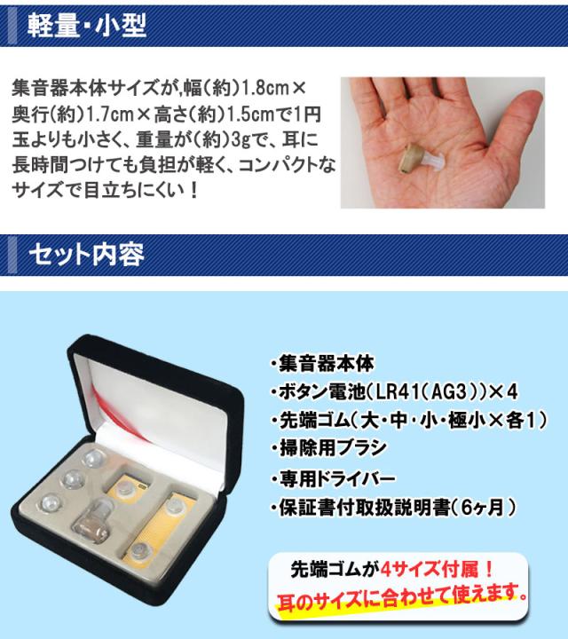 電池式集音器 イヤホン 軽量 耳穴式 電池式 左 送料無料