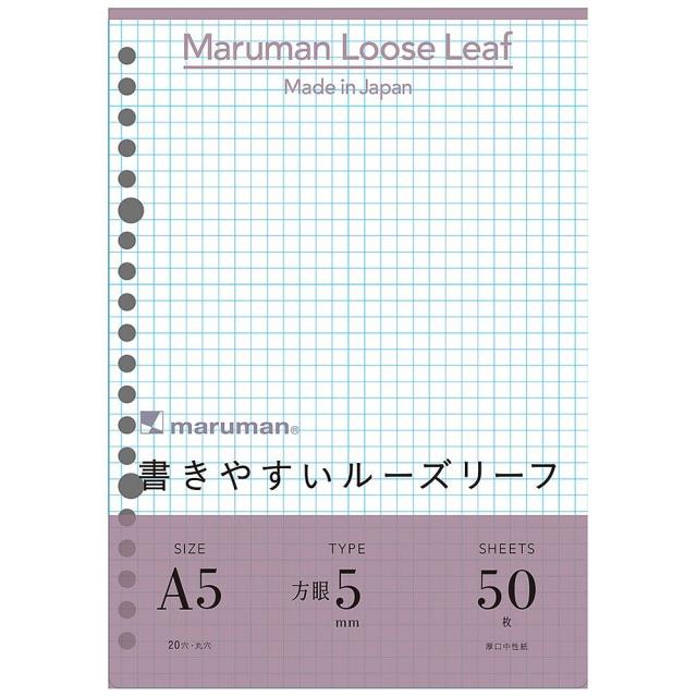 【メール便発送】マルマン 書きやすいルーズリーフ A5 5mm方眼罫 50枚 L1307 〔1冊〕