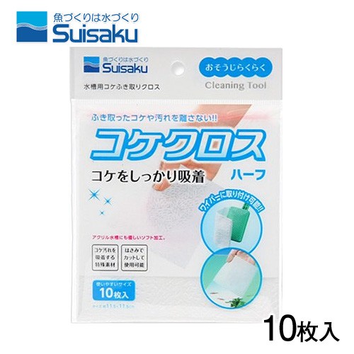 必ずコケクロスに水を含ませてからご使用ください。特に乾いた水槽面のコケや汚れを拭き取る際は強くこすると摩擦熱を生じることがあります。