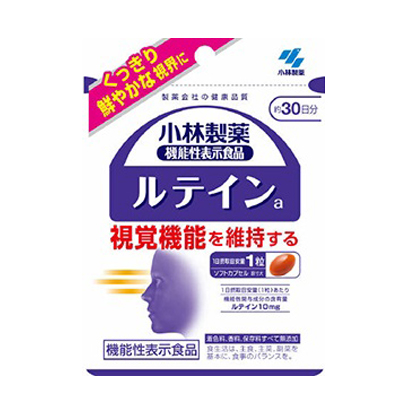 【商品説明:】●視覚機能を維持する機能性表示食品●機能性関与成分ルテイン10mg配合(1日あたり)●ルテインには、目の黄斑部の色素量を増やすこと、コントラスト感度を正常に保つことが報告されています●視覚機能を維持する●くっきり鮮やかな視界に【用法・用量:】1日1粒を目安に、かまずに水またはお湯とともにお召し上がりください。<摂取上の注意>●短期間に大量に摂ることは避けてください。●食物アレルギーの方は原材料名をご確認の上、お召し上がりください。●カプセル同士がくっつく場合や、天然由来の原料を使用のため色等が変化することがありますが、品質に問題はありません。【内容量:】485mg×30粒(約30日分)×2【製造販売元(会社名):】小林製薬株式会社