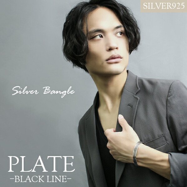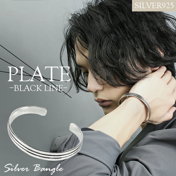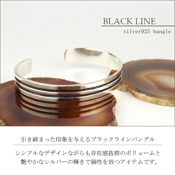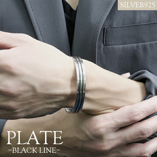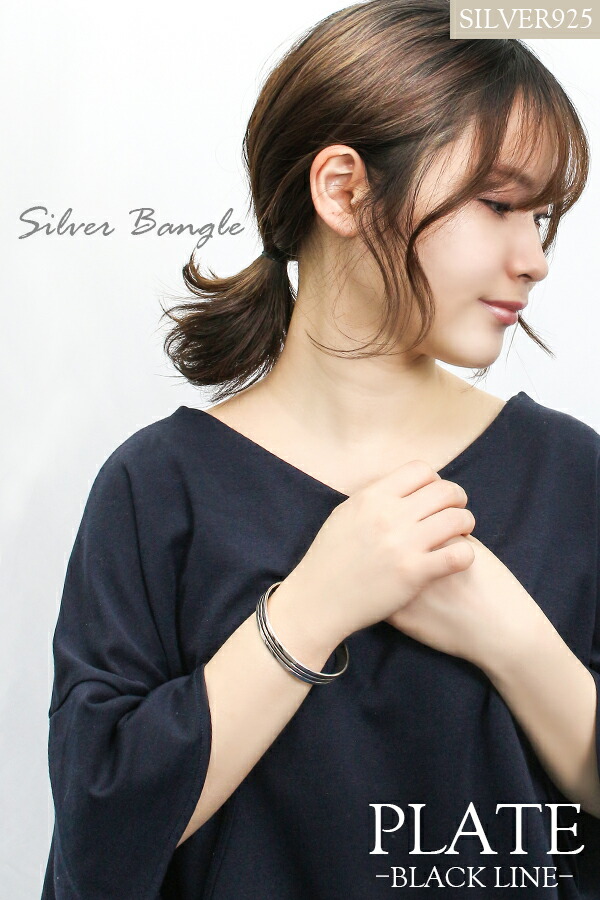 ブラック ライン プレート バングル シルバー925 シルバーアクセサリー さりげない シンプル 線 黒 アクセント スタイリッシュ きれいめ