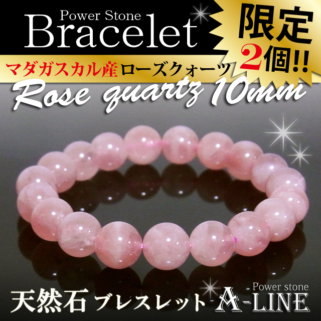 限定2個 パワーストーンブレスレット マダガスカル産ローズクォーツ10mm PW-3404