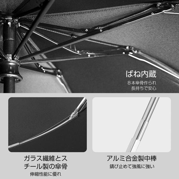 ★優れた耐風性:丈夫で壊れにくい8本骨!しっかりとした作りで風雨から守ってくれます。アルミニウム合金製中棒とガラス繊維&スチール製の傘骨を採用するので、錆びなくて、普通の傘より風に強い設計で、鉄製の傘より結構軽くて、豪雨、強風にも安心できます。