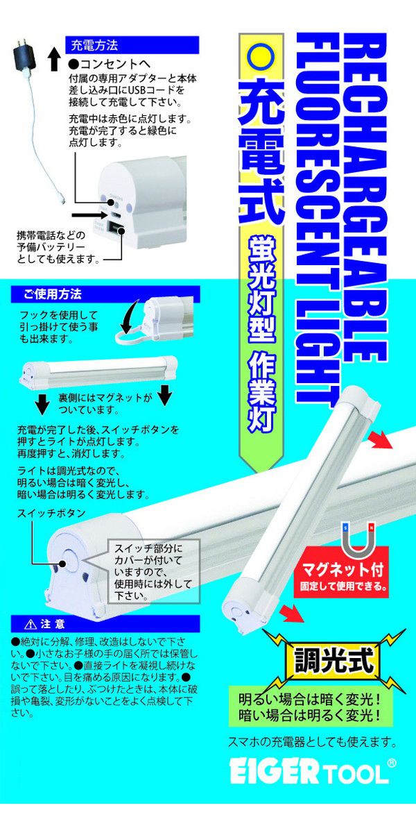 | マグネット付 充電式蛍光灯型 作業灯 | ||