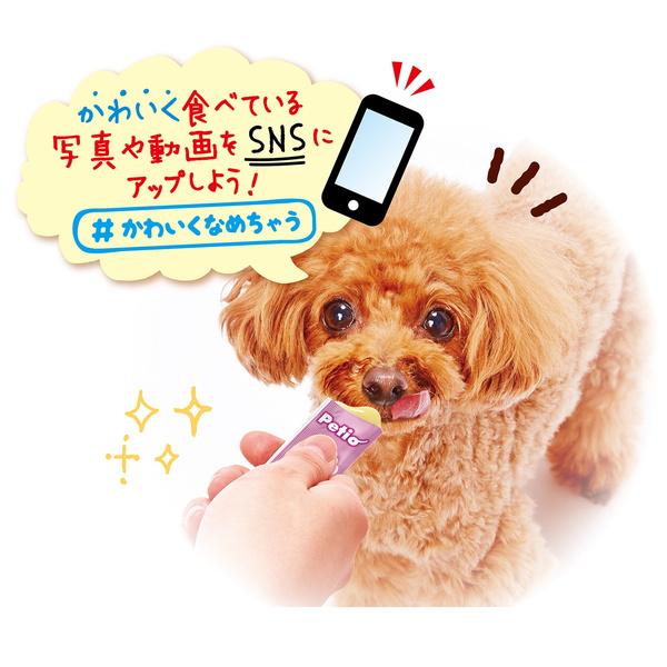 パピーからシニアまで食べられるペーストおやつ!かわいく食べている写真や動画をSNSにアップしよう!