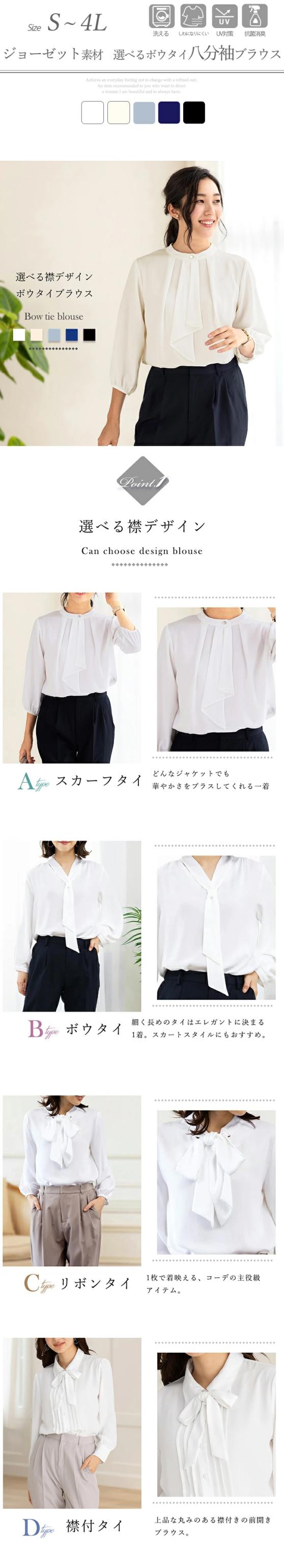 【50%OFF】【メール便送料無料】ブラウス レディース スーツ インナー 春 夏 ボウタイ カットソー ジョーゼットトップス 八分袖 大きいサイズ きれいめ オフィス カジュアル おしゃれ フォーマル n8100 8112 8115 8117[M便 1/2]