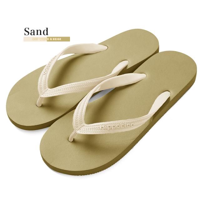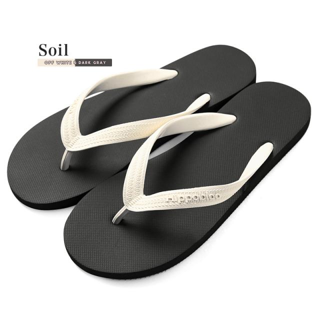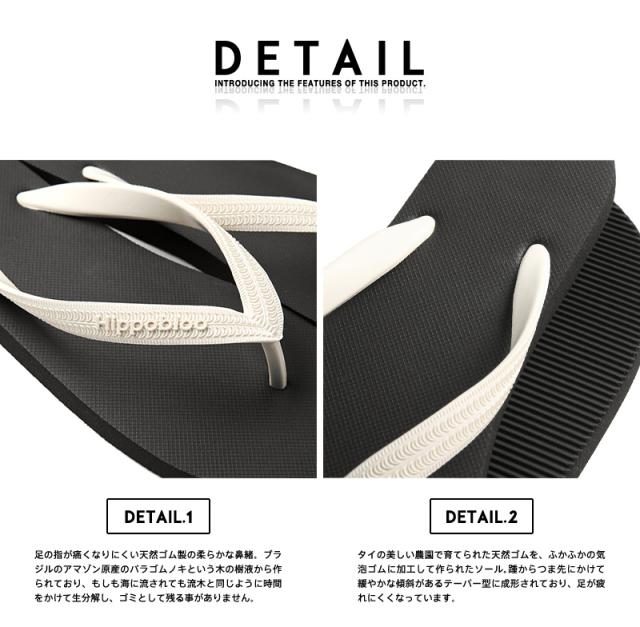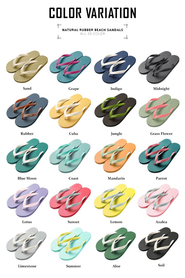 夏の定番として手放せなくなる人続出、履いたら分かるふわふわで弾力性あるソールの気持ちよさが一番の特長。鼻緒(ストラップ)も天然ゴム製で足の指が痛くならず、歩き続けても疲れないビーチサンダルとして熱狂的なファンを増やしつつあります。「ビーチサンダルは足が疲れる、痛くなる」とご心配な方にこそおすすめの足と地球環境に優しい一足。