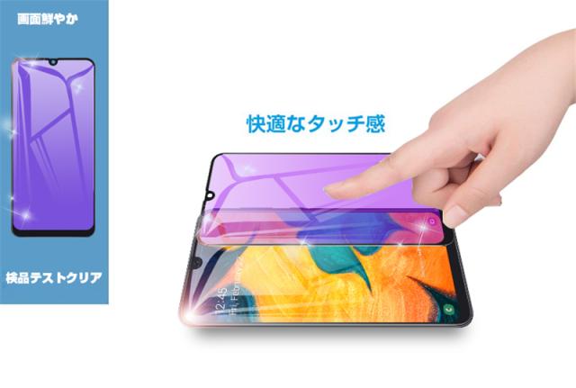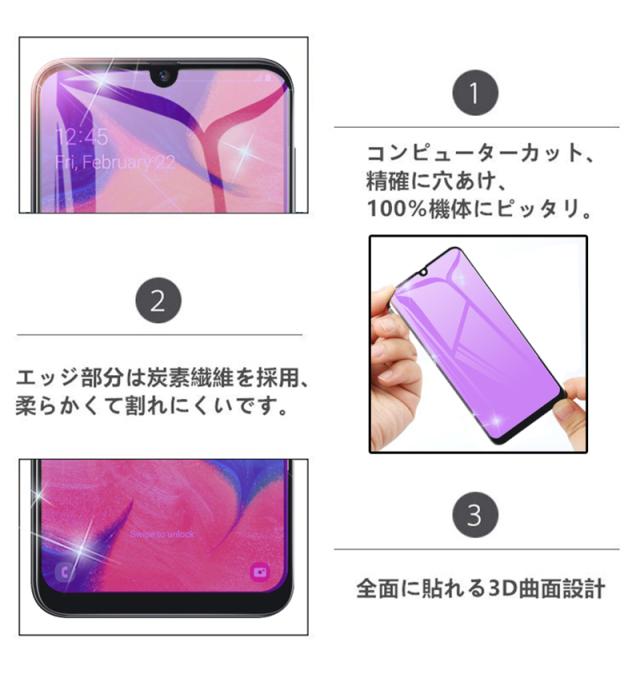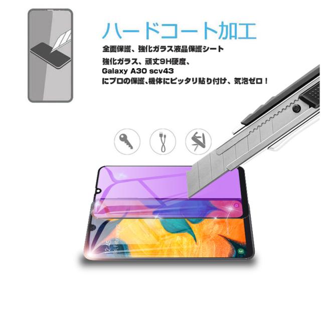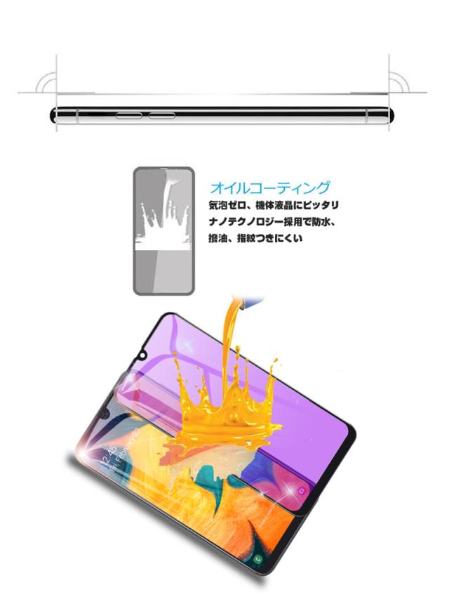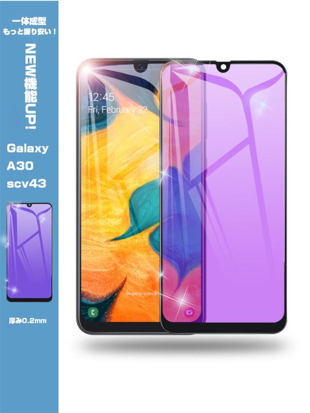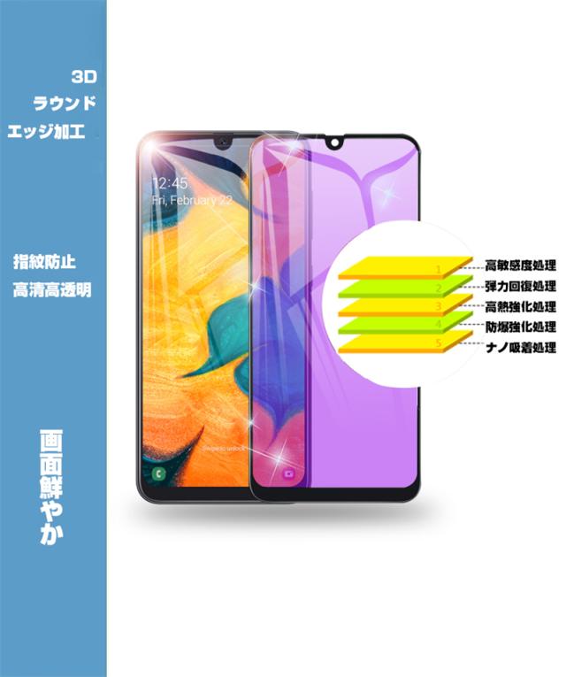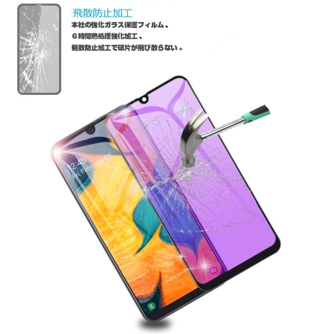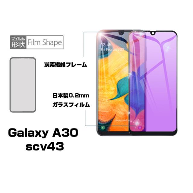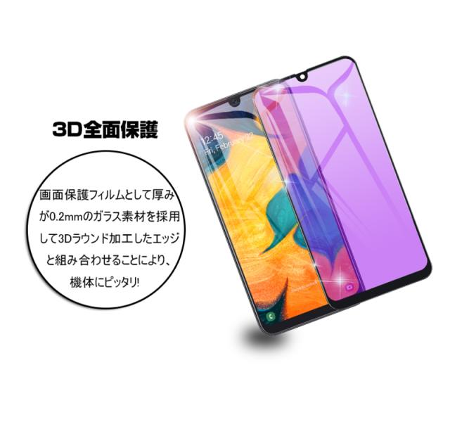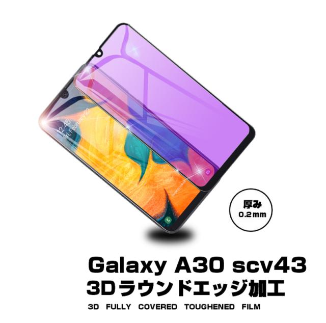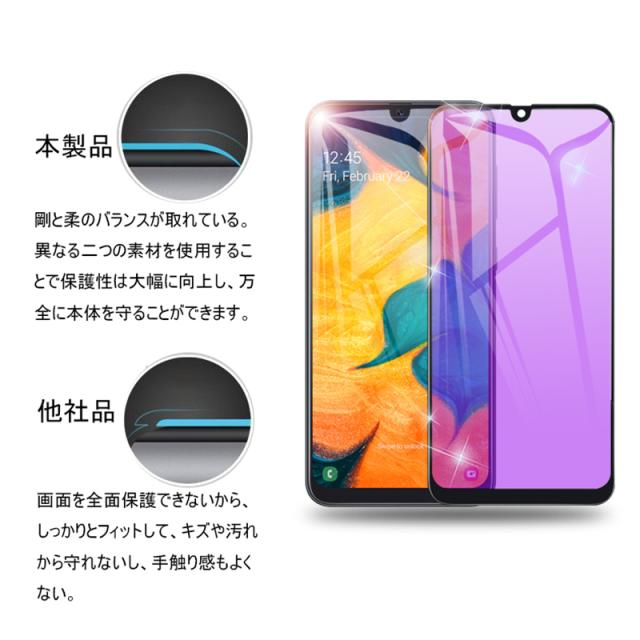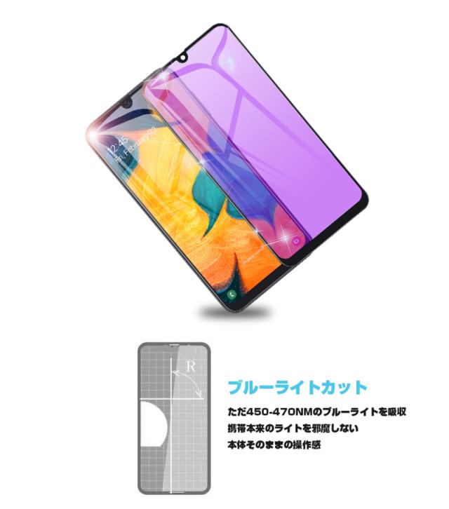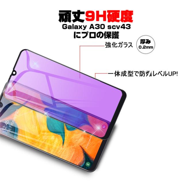 【2枚セット】Galaxy A30 ブルーライトカット 強化ガラスフィルム au SCV43 画面保護 ガラスシール ソフトフレーム 液晶保護 3D曲面