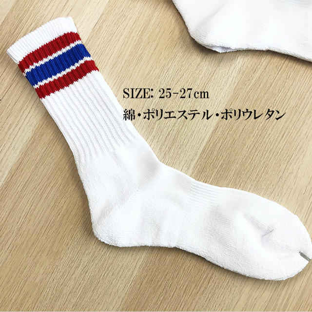 【3足セット】スケーターソックス メンズ レディース ライン入り スポーツソックス 厚手 クッション 靴下 ストリート 80s風