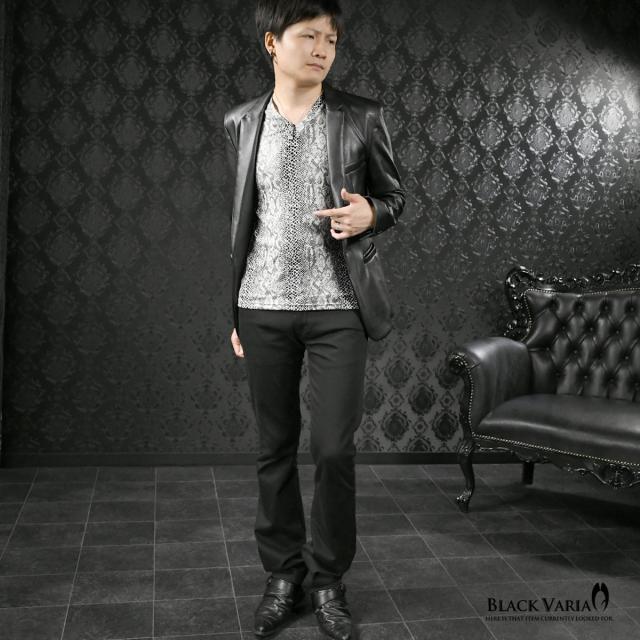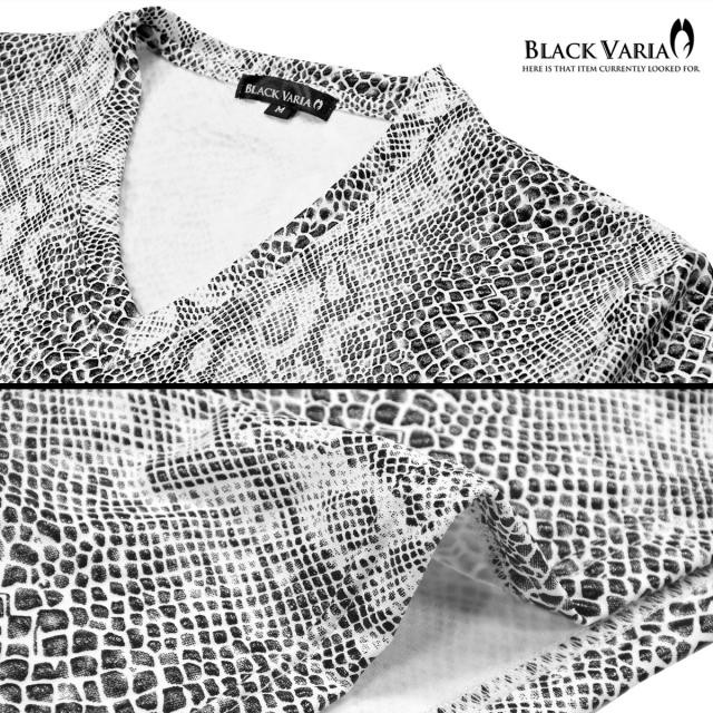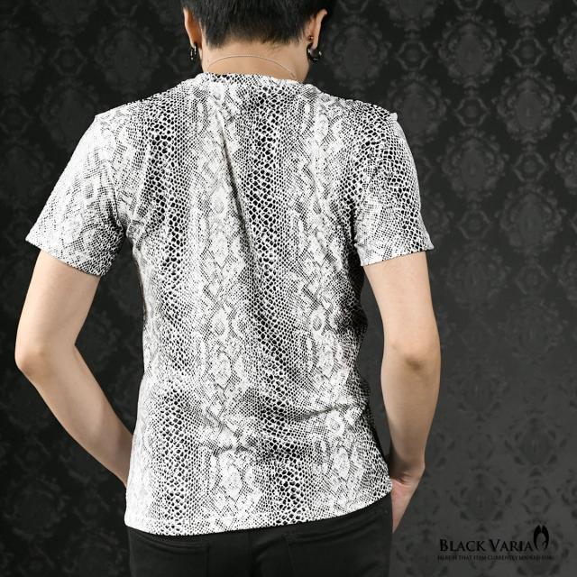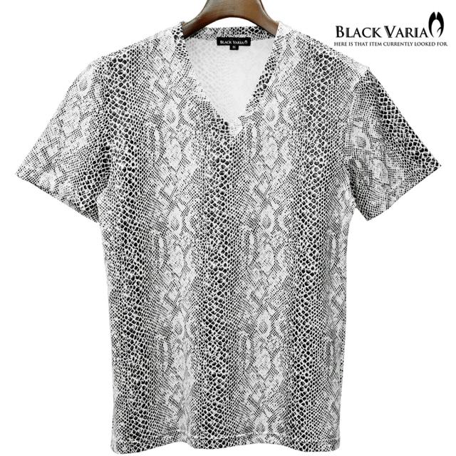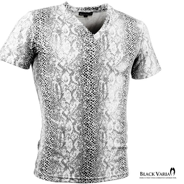 メール便可/一枚まで Tシャツ 半袖 Vネック パイソン柄 蛇 メンズ 日本製 派手 ストレッチ ファッション おしゃれ(ホワイト白) 183703