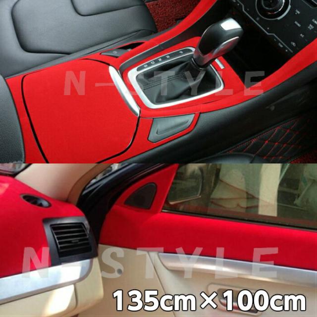 カーラッピングシート スエード調 レッド 135cm×100cm カーラッピングフィルム 耐熱耐水裏溝付 カッティングシート 内装パネル ピラー ルーフ