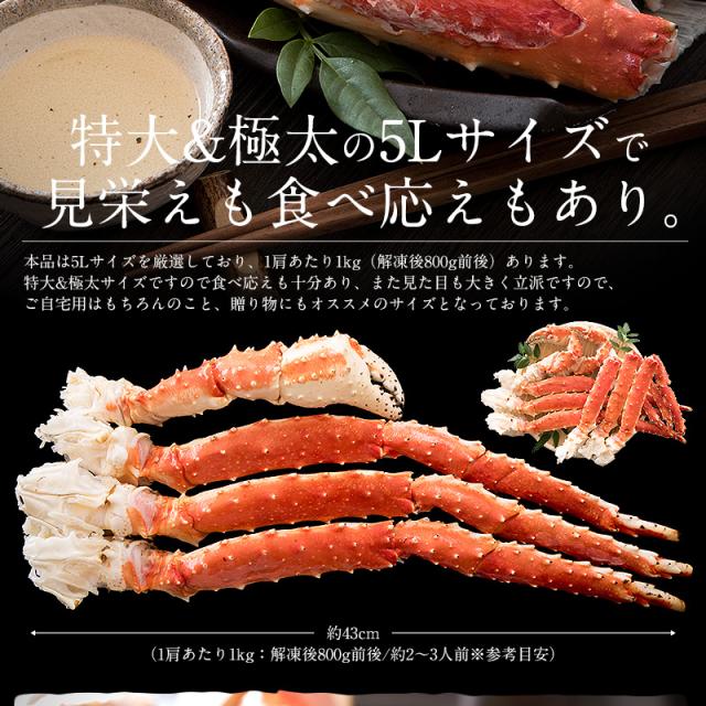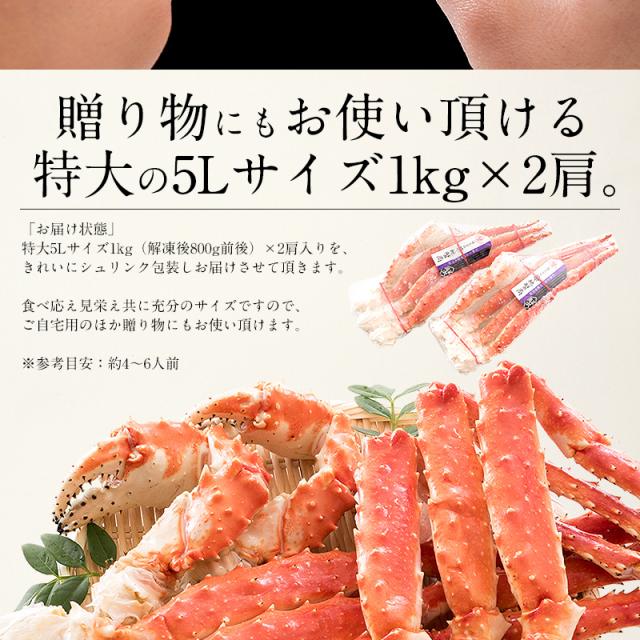 タラバガニ 足 特大 5L 1kg×2肩(解凍後1.6kg前後)タラバ蟹 たらばがに たらば蟹 かに ギフト プレゼント お歳暮