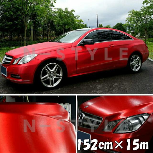 カーラッピングシート アイスブラッシュ 152cm×15m レッド ヘアラインブラッシュド マットクローム アルミ削り出し調 伸縮裏溝付