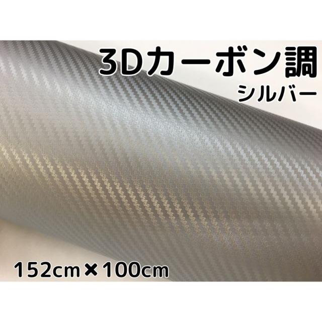 3Dカーボンシート152cm×100cmシルバー カーラッピングシートフィルム 耐熱耐水曲面対応裏溝付