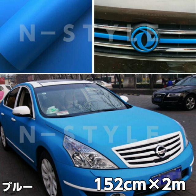 カーラッピングシート152cm×2m マットブルー艶なしラッピングフィルム 耐熱耐水曲面対応裏溝付