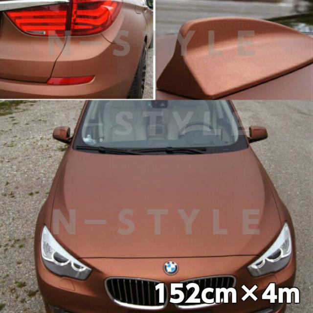 アイス系カーラッピングシート マットクロームメタリック152cm×4mブラウン 艶消しメッキカーラッピングフィルム耐熱耐水曲面対応裏溝付 カッティングシート