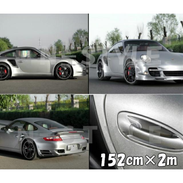 カーラッピングシート アイスブラッシュ 152cm×2m シルバー ヘアラインブラッシュド マットクローム アルミ削り出し調 伸縮裏溝付