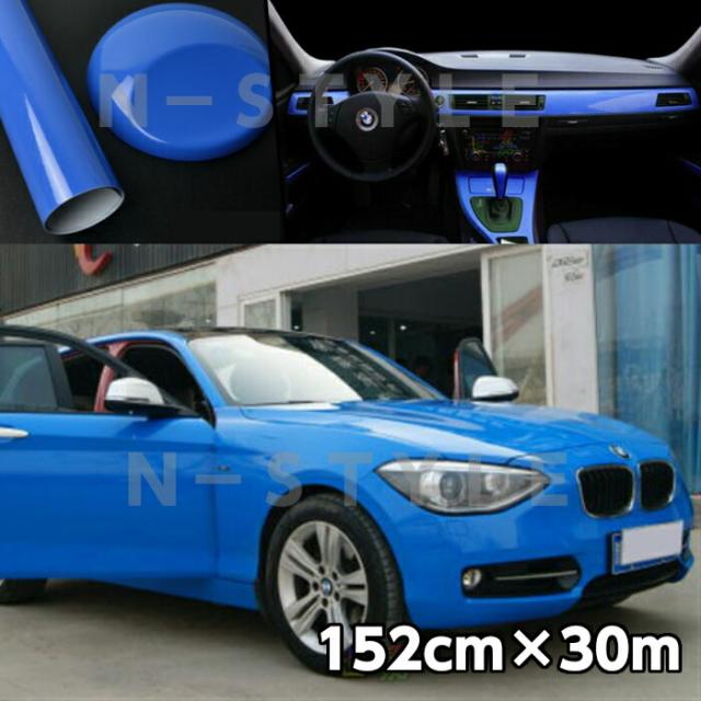 カーラッピングシート152cm×30m艶ありブルー(ツヤあり)青カーラッピングフィルム 耐熱耐水曲面対応裏溝付