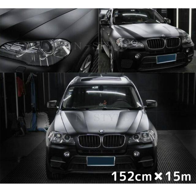 カーラッピングシート152cm×15m 艶消しマットブラック カーラッピングフィルム 耐熱耐水曲面対応裏溝付