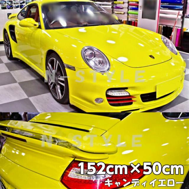 カーラッピングシート キャンディイエロー152cm×50cm 艶あり黄ハイグロスカーラッピングフィルム耐熱耐水曲面対応裏溝付