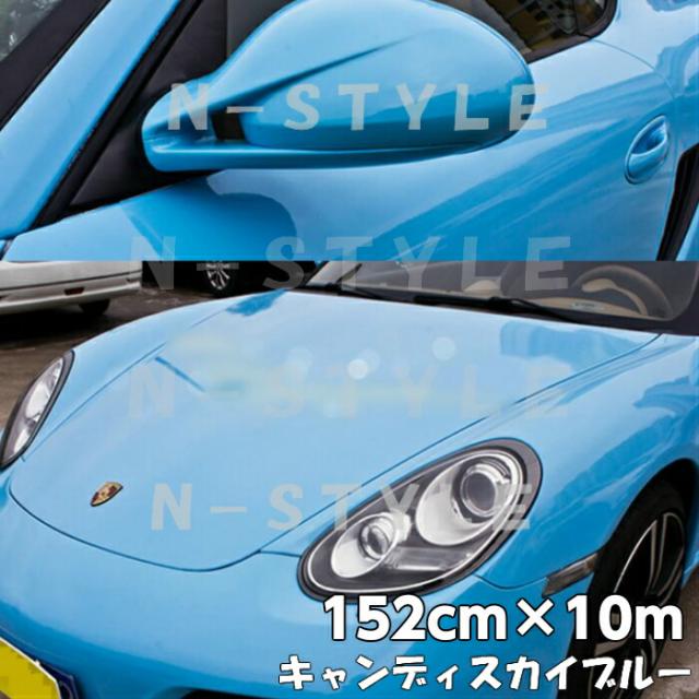 カーラッピングシート キャンディスカイブルー152cm×10m 艶あり水色ハイグロスカーラッピングフィルム耐熱耐水曲面対応裏溝付