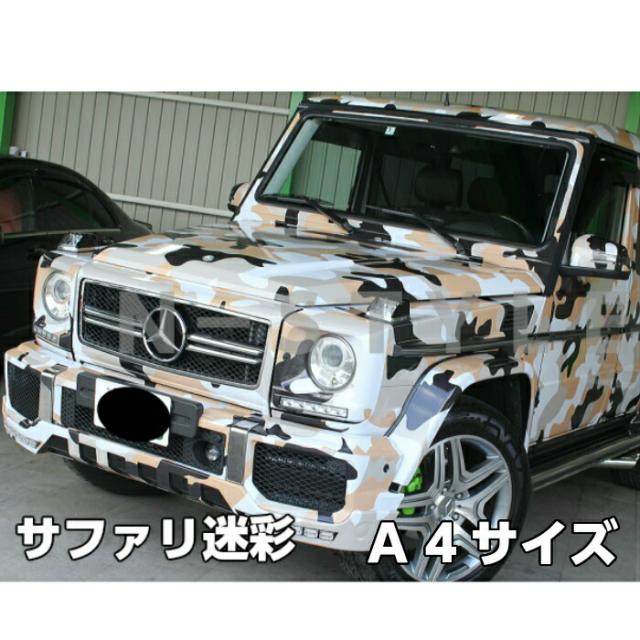 カーラッピングシートA4サイズ サファリ迷彩 ラッピングフィルム 耐熱耐水曲面対応裏溝付