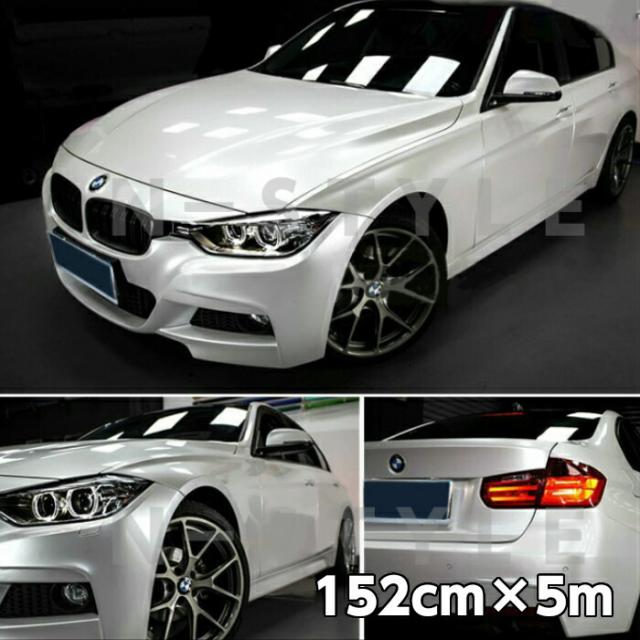 カーラッピングシート152cm×5m 艶ありパールホワイト ラッピングフィルム 耐熱耐水曲面対応裏溝付