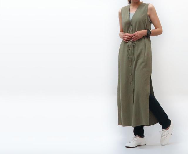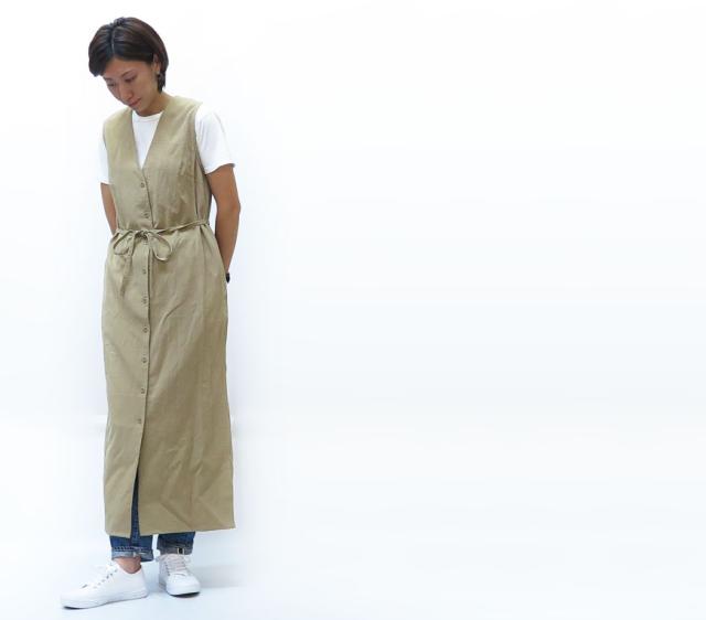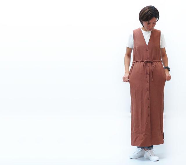表面に立体感のある綿素材のテキスタイルを用いたベストドレス。