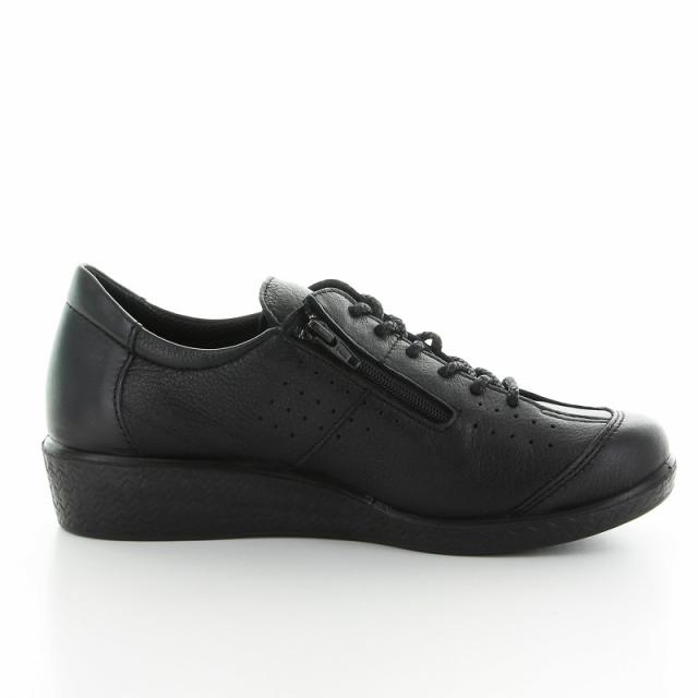 「ムーンスター スポルス」の履き心地にこだわったレディースコンフォートシューズです。丁寧な加工で仕上げた日本製ならではの履き心地です。表革は足にやさしいガーメントレザーで履くほどに足に柔らかくフィットします。ソフトなインソールと中底クッションのダブルのクッションで足に優しい設計。脱ぎ履きしやすい内側ファスナー付。【ダブルクッション】インソールの低反発ウレタンスポンジと柔らかいEVAが優しくフィットします。インソールの下にはクッション性に優れた中底があり、2つのクッションで足の負担を軽減します。足のむくみが気になりはじめたら、インソールを取り外してゆったり履くこともできます。またインソールは洗うことができます。【ガーメントレザー】天然皮革で柔軟性を持たせるため揉み加工を施したソフトレザーです。※色のばらつきや革の表面にできるシワやしわ模様の不均一さは動物の皮膚が持つ自然な特徴で、革が天然素材である為に革の加工や染色の過程で起こることがあります。 【撥水加工】アッパーに撥水加工を施しています。水をはじいて靴内を快適に保ちます。※防水仕様ではありません。【ベステック(R)ソール】【足なり設計】【ワイド設計】