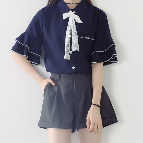 春新作トップスレディース ブラウス レディース フリル 大きいサイズ シフォンブラウス 半袖 ネクタイ リボン ドレス シャツ トップスレディース 新作 夏 秋