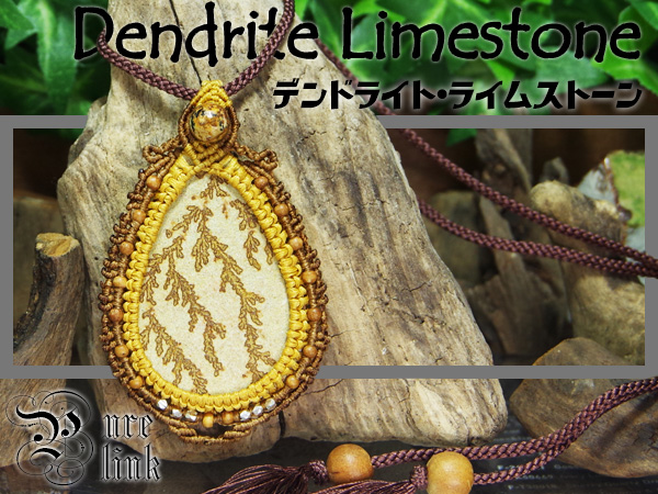 描かれた魔石『デンドライト・ライムストーン』マクラメ編ネックレス