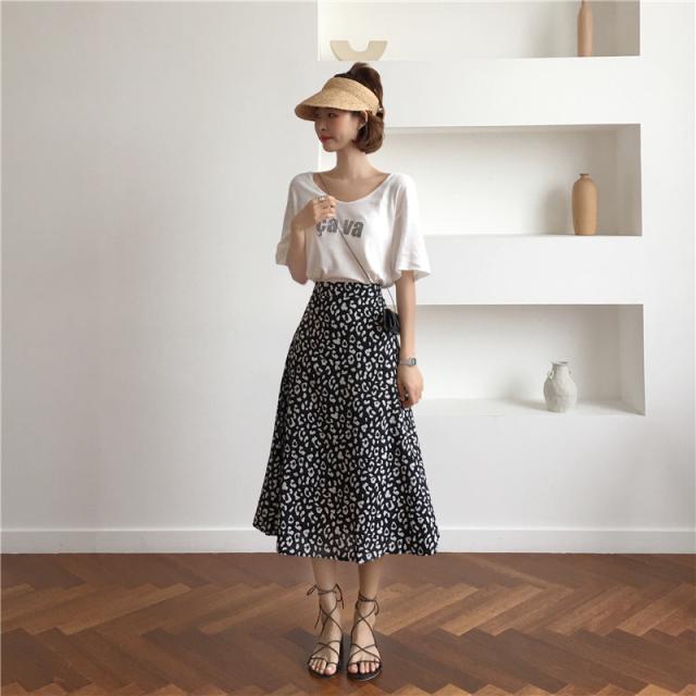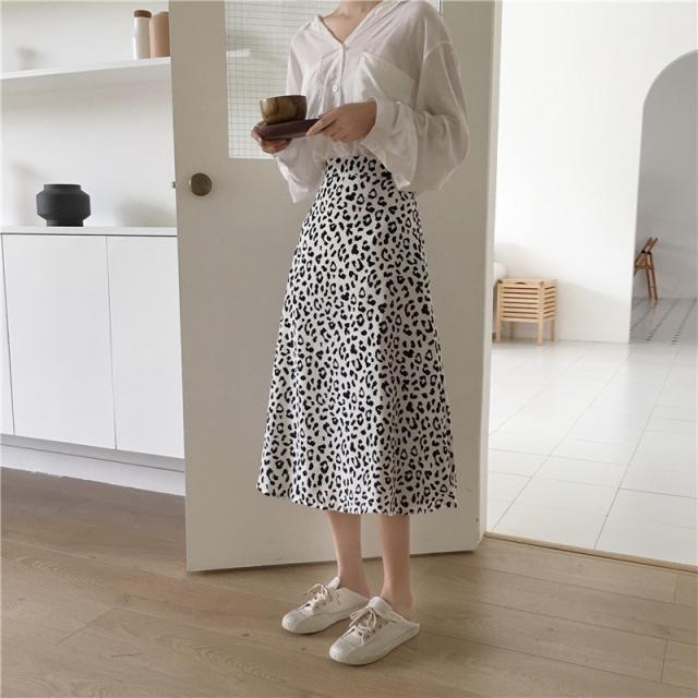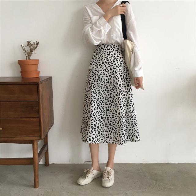 レオパード柄 スカート ヒョウ柄 レオパード フレアスカート ミモレ丈 ハイウエスト Aライン アニマル柄 隠しサイドジッパー付き 韓国ファッション カジュアル お出かけ レディース