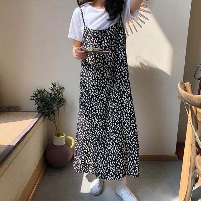 レオパード柄 スカート ワンピース ヒョウ柄 レオパード ジャンパースカート オールインワン サロペット キャミワンピ ノースリーブ ロングワンピース 韓国ファッション カジュアル お出かけ レディース