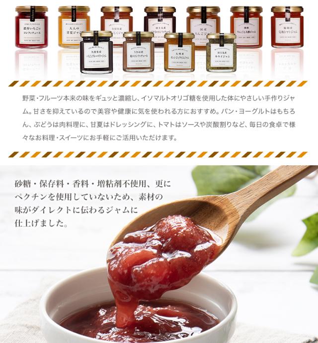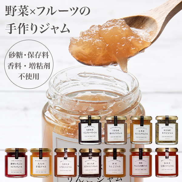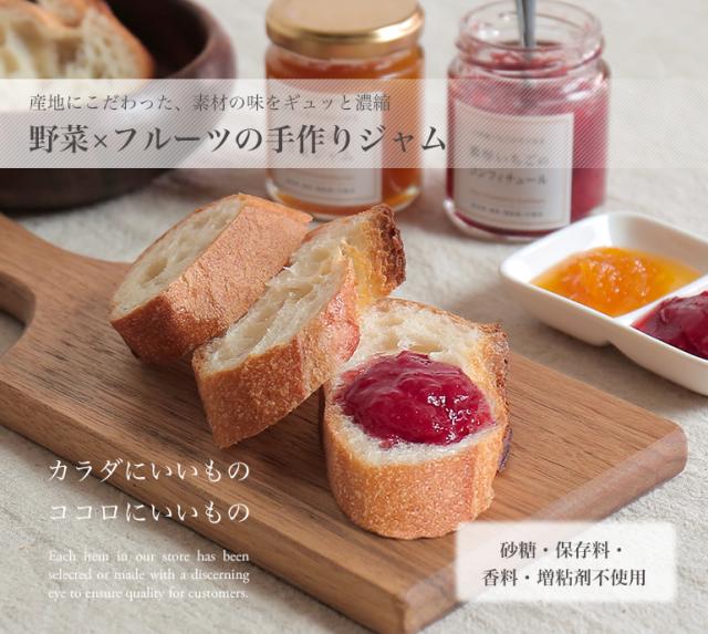 ・野菜、フルーツ本来の味をギュッと凝縮し、イソマルトオリゴ糖を使用した体にやさしい手作りジャムです。