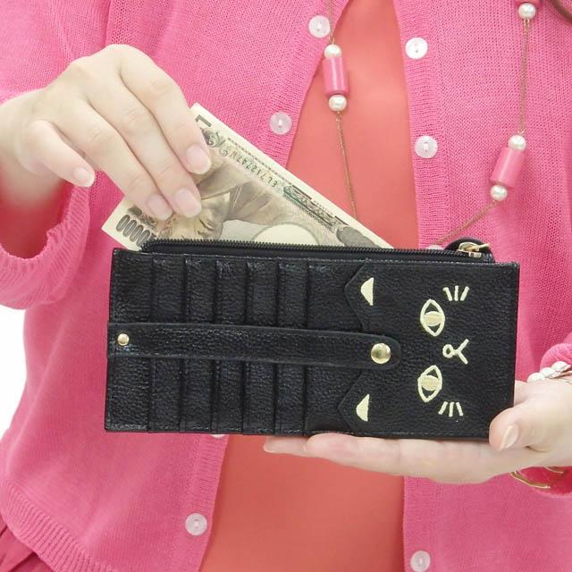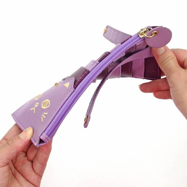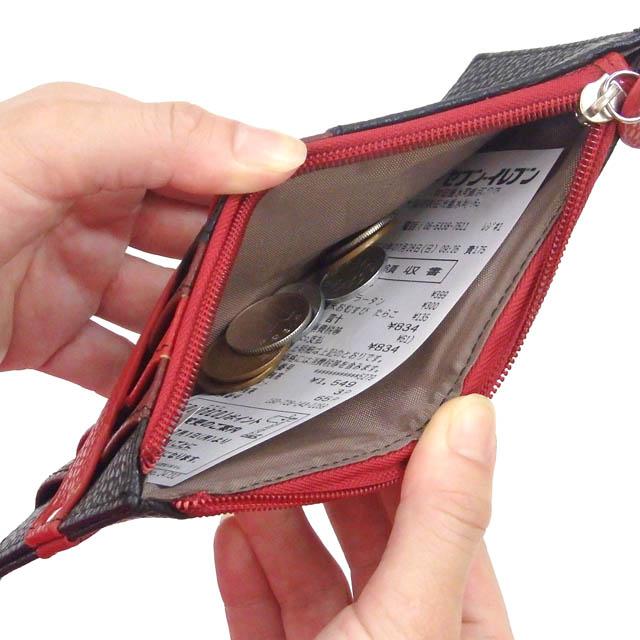 ファスナー部分に小銭やお札も収納できるのでお財布としてもお使いいただけます。