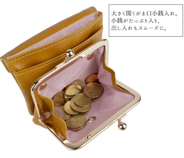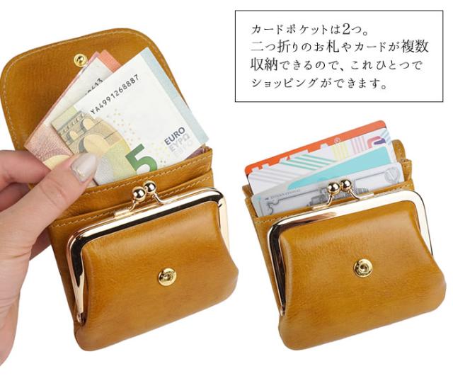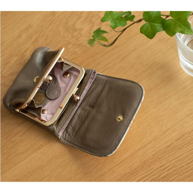 丸っこいフォルムがかわいらしいかぶせがま口財布。コンパクトにしっかり収納できて使いやすいアイテムです。