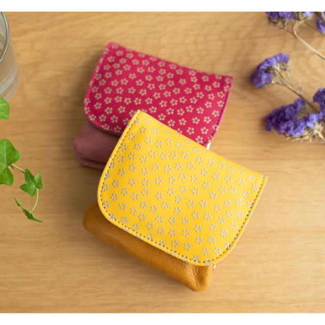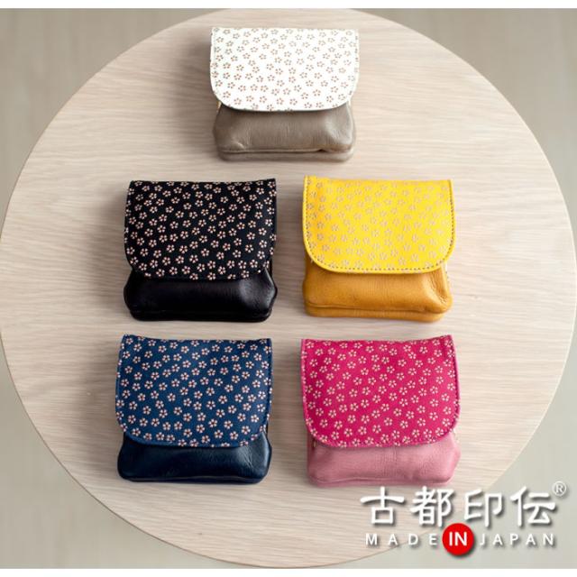 明るいカラーにモダンなデザインが魅力です。小さく舞う桜がかわいらしい古都印伝のコザクラシリーズ