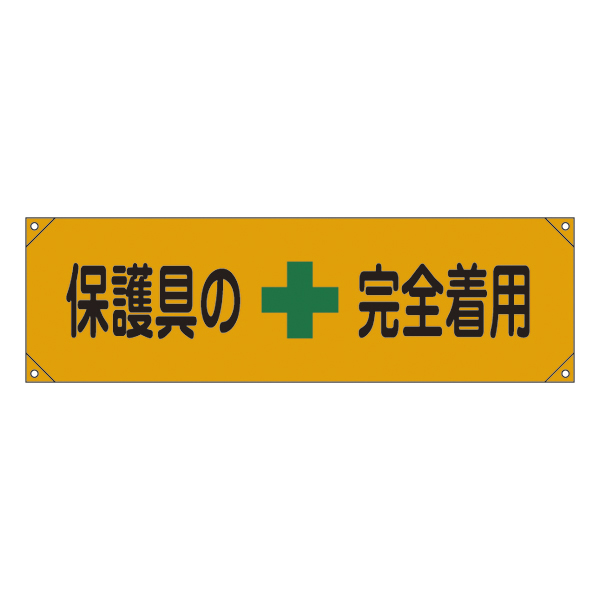 横断幕 45×158cm 「 保護具の完全着用 」 横断幕7 たれ幕 垂れ幕 日本製 ( ナイロンターポリン製 安全用品 標語 工場 現場 倉庫内 業務用 業務 ひも付き 業務用品 グッズ 用品 )