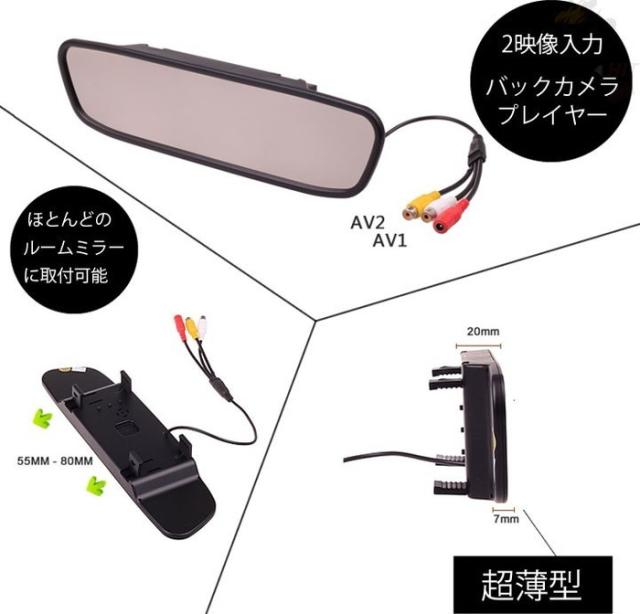 スタイリッシュな5インチルームミラー型モニターと高画質バックカメラがお買い得なセットで登場!
