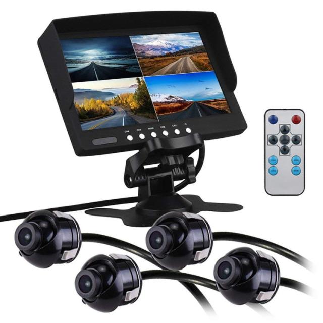 超小型CCDバックカメラ4台+7インチ4分割表示モニターセット カメラ角度調節可 正像/鏡像切替可能 MN7114SET